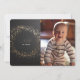 Celebra la temporada de JOY of the Navidades con esta moderna tarjeta de fotos de vacaciones con una corona de flores pintada en negro y oro fino. Las esquinas redondeadas le dan un toque delicado, pero hay otras opciones disponibles. La parte posterior de la tarjeta tiene un patrón falso pintado en oro, y se puede personalizar para incluir más fotos o un mensaje de vacaciones a tu familia y amigos. Actualice al papel más brillante para que los elementos dorados brillen y brillen.