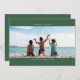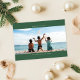 Esta minimalista y a la vez moda tarjeta fotográfica de vacaciones cuenta con una foto panorámica única / horizontal larga / gran angular sobre un fondo verde oscuro y un saludo con una fuente serif blanca que dice "FELICES VACACIONES". El dorso de la tarjeta es el mismo fondo verde, pero puede cambiarse a cualquier color que desee. También puede agregar otra foto al texto posterior y/o adicional. Puede personalizar de este diseño haciendo clic en "personalizar más adelante" en el menú desplegable de personalización. Este es el diseño perfecto para cualquiera que quiera dejar que su foto sea realmente el foco.