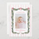 ¡Celebra la primera Navidad de tu bebé con esta dulce y elegante tarjeta de fotos rosa de primera Navidad! Con suaves tonos pastel, elegante tipografía y espacio para tu foto favorita, esta tarjeta de vacaciones personalizado es perfecta para compartir tu alegría con tus seres queridos. Añade el nombre, año y mensaje personal de tu bebé para crear un tesoro para amigos y familiares. ¡Una hermosa manera de marcar este hito vacacional en un estilo moderno y femenino!