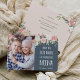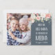 ¡Solamente las mejores madres son ascendidas a Meema! Comparte saludos dulces del Día de la Madre con esta hermosa tarjeta plana que incluye una atesorada foto de su nieto o nietos. Personaliza con sus nombres a la derecha, con letras blancas en un elegante fondo azul pizarra adornado con flores de color melocotón y rosa rubor y follaje verde. Agregue un mensaje preimpreso del personalizado al reverso.
