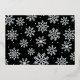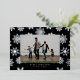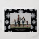 Copos de nieve prensados con papel de aluminio que cubren el fondo de la tarjeta con una foto colocada en el medio. Diseño invernal elegante; adecuado para felicitaciones de Navidad.