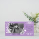 Tarjeta fotográfica púrpura con diseño floral blanco. Ideal para invitaciones de boda, Save the Dates, boda gracias y duchas de novias