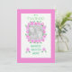 Tarjeta fotográfica de Invitación de las nuevas hijas gemelas, totalmente personalizable, bonito, rosa, blanca y verde, con un borde de flores rosas y blancas para rodear la foto de los bebés, de un collage de papel pintado a mano de Judy Adamson.
