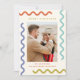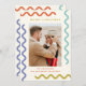 Celebra la temporada con un estilo único con nuestra tarjeta de Navidades de fotos de Squiggle Frame! Este moderno diseño de 2 fotos, llamativo, presenta un marco de coloridas pulseras que rodean tu foto favorita en el frente. En la parte trasera hay una segunda foto y mucho espacio para tu mensaje de vacaciones personalizado para la familia y los amigos. No te pierdas con esta tarjeta fotográfica Squiggle Frame Holiday única, moderna y divertida.