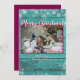 Adorables navidades rústicos de invierno saludando tarjeta de foto. Fondo rústico azul con copas de nieve blancas. Tarjeta de saludo fotográfico para navidades.