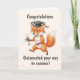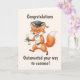 Celebrate clever achievements with this funny graduation card featuring a sly, smart fox dressed for success. The fox proudly wears a classic graduation cap and holds a certificate, symbolizing intelligence, hard work, and well-earned accomplishment. With its playful design, this card is perfect for congratulating graduates of all ages—whether they’re finishing school, university, or any special course. A delightful way to say “well done” and mark a milestone with a touch of wit and whimsy.
