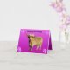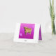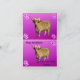 La foto es Frangipani, la vaca de las tierras altas con flores en el pelo en un fondo magenta con un mensaje de feliz cumpleaños