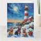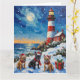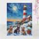 Tarjeta French Bulldog Christmas Lighthouse Holiday