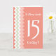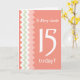 Tarjeta Frente personalizado 15º cumpleaños, Coral, Chevro
