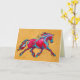 Un semental frisio emplumado multa trota a través de esta tarjeta.
