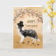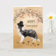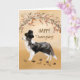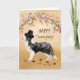 Una collie fronteriza está usando un gracioso gorra de peregrinos negros y parado bajo una corona de bayas y ramas secas. Tarjeta perfecta para enviar a su familia y amigos este Día de Acción de Gracias.
