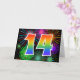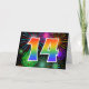 El frente de este emocionante, divertido y vibrante diseño de tarjetas de felicitación presenta un patrón colorido inspirado en fuegos artificiales de celebración, junto con el número "14" que tiene un arcoiris multicolor como patrón gradiente, en un fondo de color negro. El interior presenta un mensaje de saludo personalizado, o tal vez se pueda borrar y dejar en blanco si se va a escribir un mensaje a mano. Una tarjeta de felicitación como esta podría ser tal vez una manera divertida de reconocer el décimo cuarto cumpleaños de alguien, o tal vez el décimo cuarto aniversario de una pareja, o algún otro evento del 14. [~Z0000342]