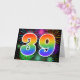 El frente de este emocionante, divertido y vibrante diseño de tarjetas de felicitación presenta un patrón colorido inspirado en fuegos artificiales de celebración, junto con el número "39" que presenta un patrón gradiente multicolor inspirado en el arcoiris, sobre un fondo de color negro. En el interior aparece un mensaje de saludo personalizado, o tal vez se pueda borrar y dejar en blanco si se va a escribir un mensaje a mano. Una tarjeta de felicitación como esta puede ser una manera divertida y feliz de enviar un mensaje a alguien que está celebrando su 39° cumpleaños, o tal vez a una pareja que celebra su 39° aniversario de boda, o a alguien que celebra algún otro evento del 39. [~Z0000342]