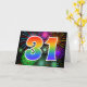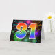 El frente de este emocionante, divertido y vibrante diseño de tarjetas de felicitación presenta un colorido patrón inspirado en fuegos artificiales de celebración, junto con el número "31" que tiene un patrón gradiente inspirado en el arcoiris multicolor, sobre un fondo de color negro. En el interior aparece un mensaje de saludo personalizado, o tal vez se pueda borrar y dejar en blanco si se va a escribir un mensaje a mano. Una tarjeta de felicitación como esta podría ser tal vez una manera divertida de reconocer el 31° cumpleaños de alguien, o tal vez el 31° aniversario de una pareja, o algún otro acontecimiento. [~Z0000342]