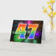 El frente de este emocionante, divertido y vibrante diseño de tarjetas de felicitación presenta un colorido patrón inspirado en fuegos artificiales de celebración, junto con el número "47", que presenta un diseño multicolor como el gradiente, sobre un fondo de color negro. En el interior aparece un mensaje de saludo de personalizable, o tal vez se pueda borrar y dejar en blanco si se va a escribir un mensaje a mano. Una tarjeta de felicitación como esta puede ser una manera divertida y feliz de enviar un mensaje a alguien que está celebrando su cuarenta y siete cumpleaños, o tal vez a una pareja que celebra su cuadragésimo sétimo aniversario de bodas, o a alguien que celebra algún otro evento del 47. [~Z0000342]
