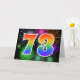 El frente de este emocionante, divertido y vibrante diseño de tarjetas de felicitación presenta un colorido patrón inspirado en fuegos artificiales de celebración, junto con el número "73" que tiene un patrón gradiente inspirado en el arcoiris multicolor, sobre un fondo de color negro. El interior presenta un mensaje de saludo personalizado, o tal vez se pueda borrar y dejar en blanco si se va a escribir un mensaje a mano. Una tarjeta de felicitación como esta podría ser una manera divertida de celebrar el cumpleaños setenta y tres de alguien, o tal vez el septuagésimo tercer aniversario del boda de una pareja, o algún otro evento del 73. [~Z0000342]