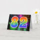 El frente de este emocionante, divertido y vibrante diseño de tarjetas de felicitación presenta un patrón colorido inspirado en fuegos artificiales de celebración, junto con el número "82", que presenta un diseño multicolor como el gradiente, sobre un fondo de color negro. En el interior aparece un mensaje de saludo personalizado, o tal vez se pueda borrar y dejar en blanco si se va a escribir un mensaje a mano. Una tarjeta de felicitación como esta podría ser una manera divertida y feliz de enviar un mensaje a alguien que está celebrando su 82° cumpleaños, o tal vez a una pareja que celebra su 82° aniversario de boda, o a alguien que celebra algún otro acontecimiento 82. [~Z0000342]