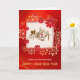 Esta tarjeta tradicional pero moderna para el Año Nuevo Lunar chino presenta patrones tradicionales chinos de fuegos artificiales y flores en diferentes tamaños y estilos sobre un fondo de gradiente rojo, como fuegos artificiales floreciendo en el cielo. El rojo brillante, que simboliza buena fortuna y alegría, es el color más popular para la celebración del Año Nuevo Lunar. La hermosa caligrafía china “恭賀新年”, un sello rojo impreso con la imagen de un conejo y los caracteres "癸卯", el número "2023", y "Feliz Año Nuevo Chino" en inglés, están bien diseñados en el centro, resaltados por el fondo con un patrón de sombreado de nubes tenues.