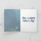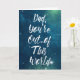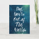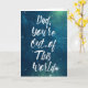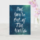 "Papá, estás fuera de este mundo" dice el mensaje en esta tarjeta con letras en negrita y en blanco contra un cielo azul y verde lleno de estrellas en el espacio exterior. Con un gráfico de coordinación dentro y un mensaje feliz del Día del Padre, es la tarjeta perfecta para los papás a los que les encantan las estrellas y las películas de ciencia ficción.