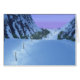 Un paisaje de fantasía 3D lleno de nieve brillante y mágicas luces de hadas. Una hilera de lámparas resplandecientes y silenciosas ilumina el camino a través de una montaña nevada rodeada de acantilados rocosos. El brillante camino cubierto de nieve está cercado por abetos oscuros.