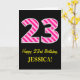 Tarjeta Fun Pink Striped "23"; Feliz 23 cumpleaños; Nombre