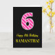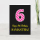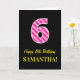 Tarjeta Fun Pink Striped "6"; Feliz sexto cumpleaños; Nomb