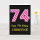Tarjeta Fun Pink Striped "74"; Feliz cumpleaños 74; Nombre