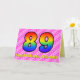 Esta divertida y feliz tarjeta de felicitación de 89 años tiene un frente con un gran número "89" que tiene un colorido patrón de gradiente inspirado en el espectro del arco iris, en un divertido fondo de rayas rosa y rosa oscuro formas del corazón. En la parte delantera también aparece el mensaje "Feliz cumpleaños 89", seguido de un nombre de destinatario de personalizable. El interior presenta un mensaje de bienvenida de cumpleaños de personalizable, o tal vez podría ser borrado y dejado en blanco si se va a escribir un mensaje a mano. Una tarjeta de personalizable como esta podría ser una manera divertida y feliz de reconocer el ochenta y nueve cumpleaños de alguien. [~Z0000418]