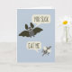 Añade tu propio mensaje al interior de esta graciosa tarjeta de cumpleaños o déjalo como está para el mensaje de cumpleaños de la cadena de comida. La parte delantera de la tarjeta tiene una conversación mordaz entre un murciélago personalizado y un mosquito personalizado sobre un fondo azul claro.