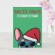Si conoces a alguien que ama los bulldoges franceses y tiene buen sentido del humor, esta graciosa tarjeta de Navidades franceses es ideal para enviárselos durante las festividades. El diseño presenta un ilustracion al estilo personalizado de un bulldog francés de color azul y marrón con un sombrero de Santa María y gafas de sol rojas con la frase "Santa Paws se va a la ciudad" escrita en la parte delantera. En el interior se puede leer "Deseándote Navidades atractivos", pero se puede cambiar a tu gusto. Este diseño también está disponible con diferentes bulldoges franceses de colores.