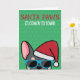 Tarjeta Funny Blue Tan Frenchie Santa Paws Navidades