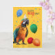A lovely Catalina Macaw parrot, or for some they call this macaw the Rainbow Macaw - stands with a party hat and balloons to offer very happy BIRDday wishes to the parrot parent.