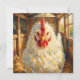 A funny impasto illustration of a chicken that looks angry standing in a chicken coup giving you the eye!