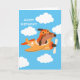 Imagine sending this cue card to your little boy aviator. Design features a furry dog friend at the controls of a bright, colorful airplane, zooming through a sky filled with puffy white clouds. On the inside is a fun, heartfelt message. Personalize it instantly with the child's name and message.