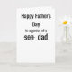 Featuring the phrase "Happy Father's Day to a genius of a son" with "dad" humorously crossed out, this card delivers a light-hearted joke with a confident, modern feel. Perfect for keeping things fun without being too sentimental.