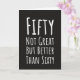 Deliver the perfect dose of relatable **humor** for this milestone celebration with our **50th birthday** card! It features the honest and witty quote: **"Fifty Not Great But Better Than Sixty."** This **unique**, **themed** design is the ultimate **gag** gift for any **fiftieth birthday**, offering a refreshingly candid take on reaching **fifty** years young. It's a wonderful **novelty** item that's perfectly **related** for anyone who appreciates a good-natured, realistic perspective on this landmark age.