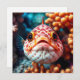 Una tarjeta en blanco con una cara de pez linda se cierra solo porque es lindo! Pescado blanco y naranja con coral naranja.