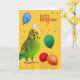 Tarjeta Funny Green and Yellow Budgie Parakeet Birthday