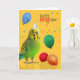 The vivid green and yellow hues with hints of turquoise in the wings and tail feathers makes this Budgie Parakeet adorable and for the bird lover, a fun birthday card.