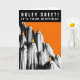 Creativa tarjeta de cumpleaños de Halloween con diseño de fantasmas vintage y línea divertida. Añadir nombre para personalizar.