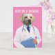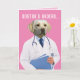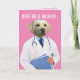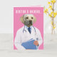 Un laboratorio amarillo de aspecto muy serio con una bata de laboratorio (es un "dogtor"). El frente dice: "Órdenes de Dogtor..." Dentro de la tarjeta hay una lista de órdenes a seguir (que son muy similares a las órdenes de los perros): "MENTIRA, SALIR, VER TV, RETRASAR, DORMIR, SALIR. Mejórate!