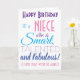 ¡Una graciosa tarjeta de cumpleaños feliz para tu sobrina! Envíelo a "alguien que es inteligente, talentoso y fabuloso" - ¡porque eres tan parecido! Haz sonreír a tu sobrina con esta humorística y elegante carta. Diseño de tipografía rosa y morada. Personalice el nombre y el mensaje.