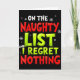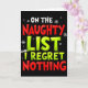 Tarjeta Funny On The List Of Naughty And I Regret Nothing