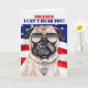 Tarjeta Funny Perro de Pug y cumpleaños militar con bander