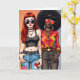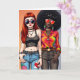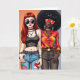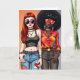 Diga Feliz cumpleaños a un amigo con esta graciosa tarjeta de vibraciones de los 70. Mujer caucásica y afroamericana vestida de groovy estilo años 70. Adorables amigos de historietas de arte pop en los años 70.