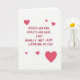 This greeting card features a plain white background with bold red text centered in the middle. The message begins with the familiar line, “Roses are red, violets are blue,” and then turns into a cheeky, suggestive phrase meant to surprise and amuse. The lettering is red sans-serif with a smooth, even look that makes the words easy to read at a glance. Five flat fuchsia hearts are placed around the text as simple accents. One larger heart sits in the lower right corner, while smaller hearts appear near the upper left, top center, and lower left. With no characters or scenery, the focus stays on the words and the flirty tone. The card mixes romance and humor in a bold, confident way, making it a fun choice for a partner who enjoys a little sass with their Valentine’s Day affection ❤️