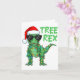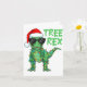 Tarjeta Funny Tree Rex Christmas Dinosaur Santa Hat Lights