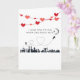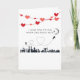 This funny card features a minimalist design of an airplane flying over a city leaving heart contrails as it soars towards the moon. Above the illustration is a funny saying "I love you to the moon and back, but..." Open the card to view the humorous response "I'd prefer a direct flight! Happy Valentine's Day". Personalize it with your specific romantic message or use our default funny one!