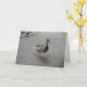 Esta bonita tarjeta muestra una fotografía de un divertido pato remando a través de un camino de hormigón. Este pájaro descarado había salido de un estanque y estaba en la búsqueda de algo de pan en un parque tranquilo.