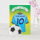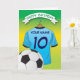 Niños personalizados tarjetas de felicitación de cumpleaños de fútbol con fondo verde/amarillo descolorido y una camisa azul pálido de fútbol/fútbol con un guarnecido azul oscuro, puedes personalizar la camisa con el nombre y la edad de los niños, y una bola en la parte inferior. Esta tarjeta de cumpleaños de fútbol impresionará al niño de cumpleaños, ya sea su hijo/hija, sobrino/sobrina, nieto/nieto o nieta, o amigo, ¡literalmente a cualquiera que luzca loco! ¡No olvides añadir tu mensaje especial dentro de la tarjeta!